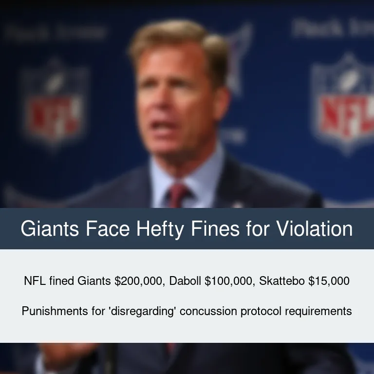 The National Football League (NFL) has cracked down on the New York Giants organization for violating concussion protocols during an in-game evaluation, imposing substantial fines on the team, head coach Brian Daboll, and rookie running back Cam Skattebo.