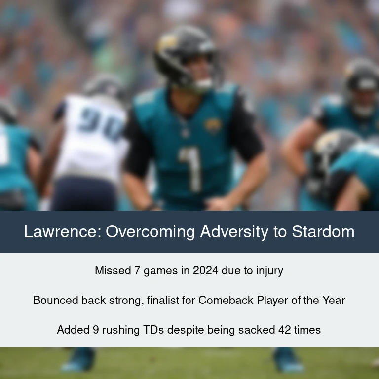 Lawrence’s nomination for the Comeback Player of the Year award is a testament to his resilience and determination. After missing seven games due to injury in the 2024 season, the young quarterback has bounced back with a vengeance, joining the ranks of fellow finalists Dak Prescott, Christian McCaffrey, Stefon Diggs, and Aidan Hutchinson. His remarkable recovery and subsequent dominance on the field have solidified his status as one of the league’s most promising talents. Despite being sacked 42 times for a loss of 249 yards, Lawrence remained poised and productive, adding 9 rushing touchdowns to his impressive stat line.